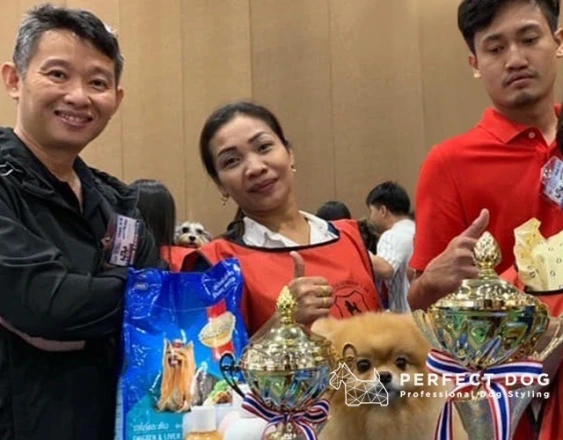 ทีมช่างประจำร้านอาบน้ำตัดขนสุนัขคว้าหลายรางวัล ที่เมืองทองธานี ประเทศไทย